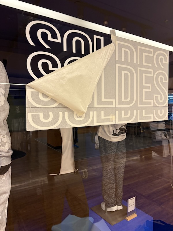 Attirez l’attention de vos clients dès le premier regard grâce à nos adhésifs de lettrage professionnels SOLDES pour vitres boutiques et commerces. Simples à poser, esthétiques et entièrement personnalisables sur demande.