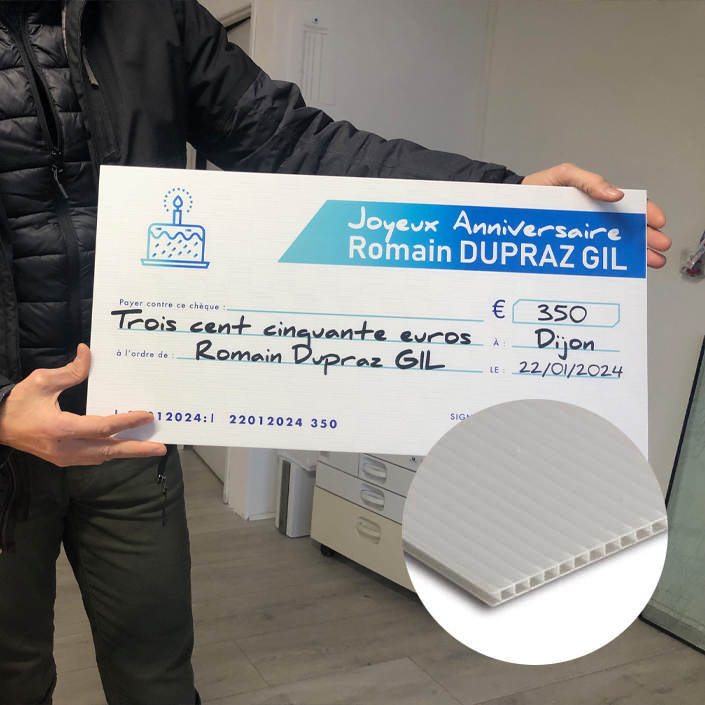 Permet de mettre en valeur votre entreprise et la somme offerte / gagnée lors d’une remise de chèque. Marquera un temps fort lors de votre événement.