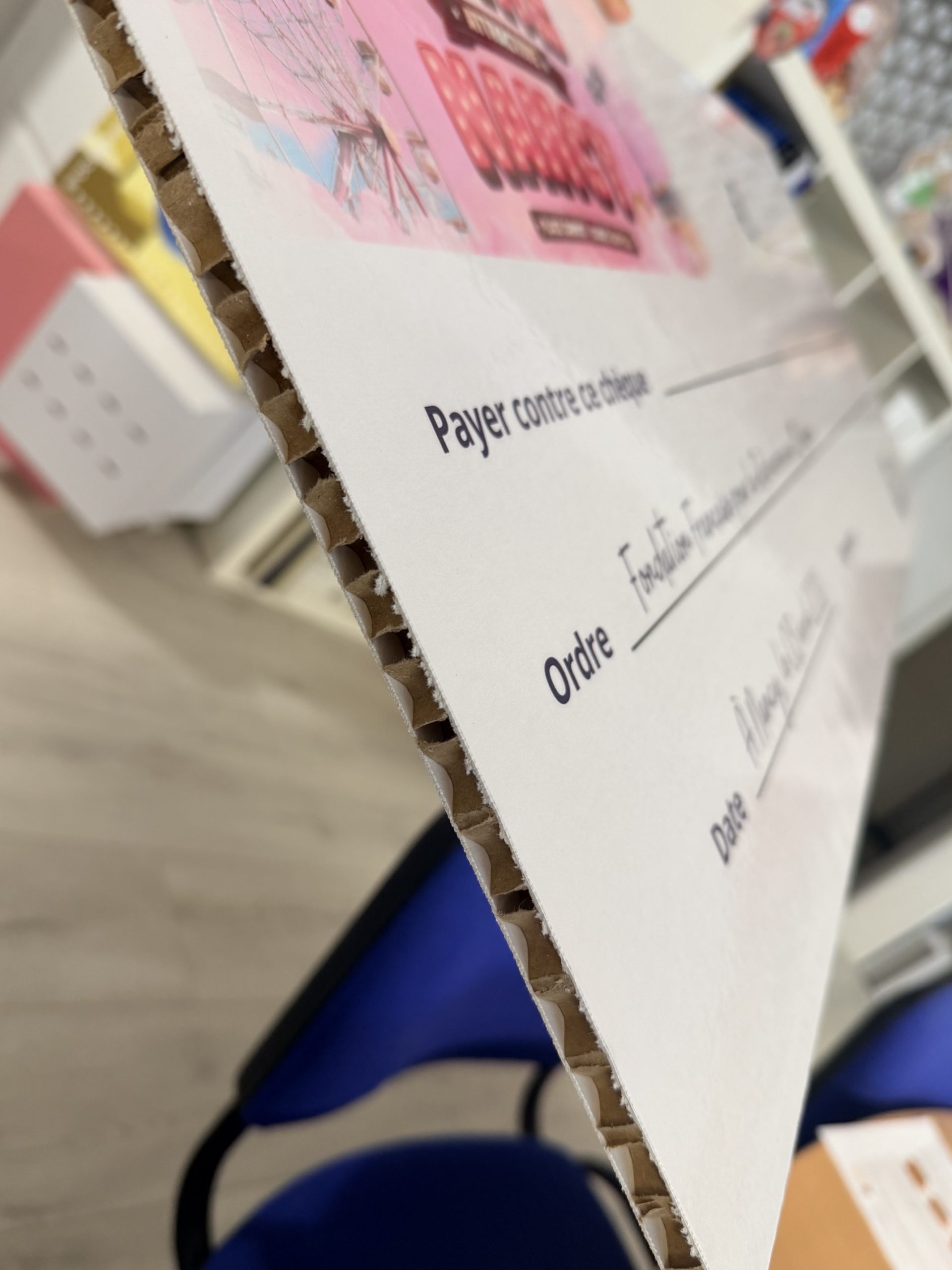 Permet de mettre en valeur votre entreprise et la somme offerte / gagnée lors d’une remise de chèque. Marquera un temps fort lors de votre événement.