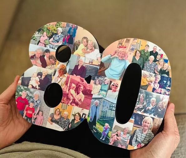 Nous réalisons votre collage photo en chiffre d’anniversaire personnalisé.