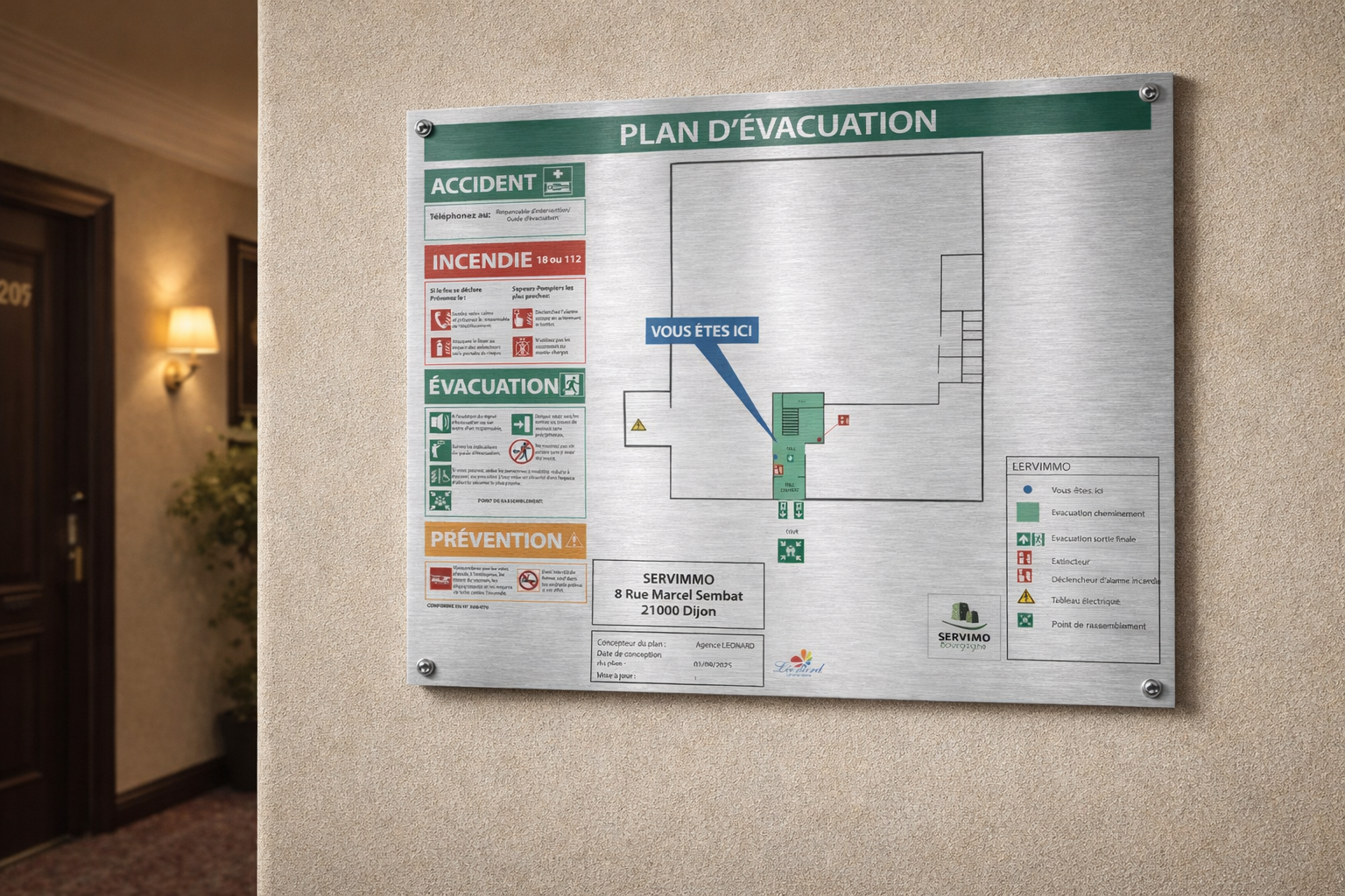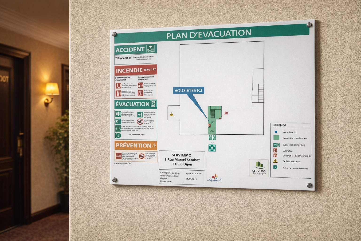 | Format | 20x30cm (A4), 40x60cm (plan d'évacuation général) |