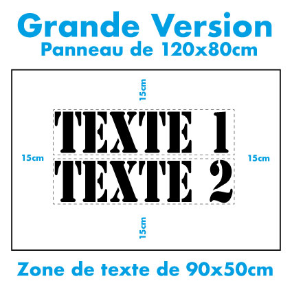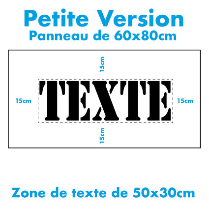 Le pochoir sera fourni avec une marge + ou – 15cm autour du texte (zone de sécurité) pour votre marquage au sol